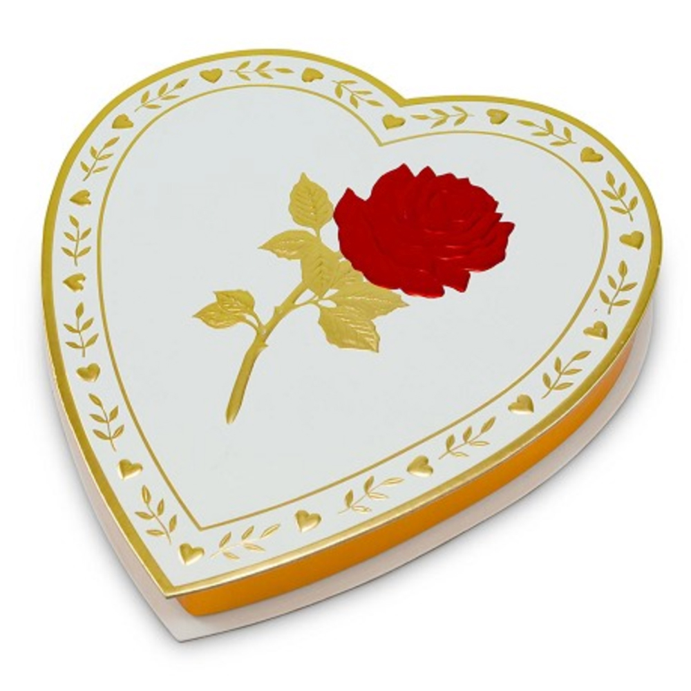 An elegant white heart shaped box embossed with a red rose. This is one of our most popular Valentine heart boxes