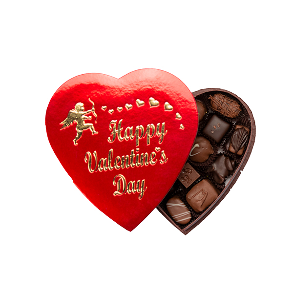 This cute milk and dark chocolate assortment heart box is filled with chewy golden caramels, velvety creams, rich truffles, fruit jellies, marshmallows, cashew turtles, nuts and of course our well known peanut butter creations.