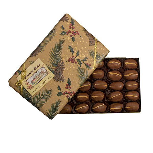 Twice as much creamy peanut butter mousse center topped with a dab of creamy peanut butter then drenched in Premise Maid's signature chocolate.