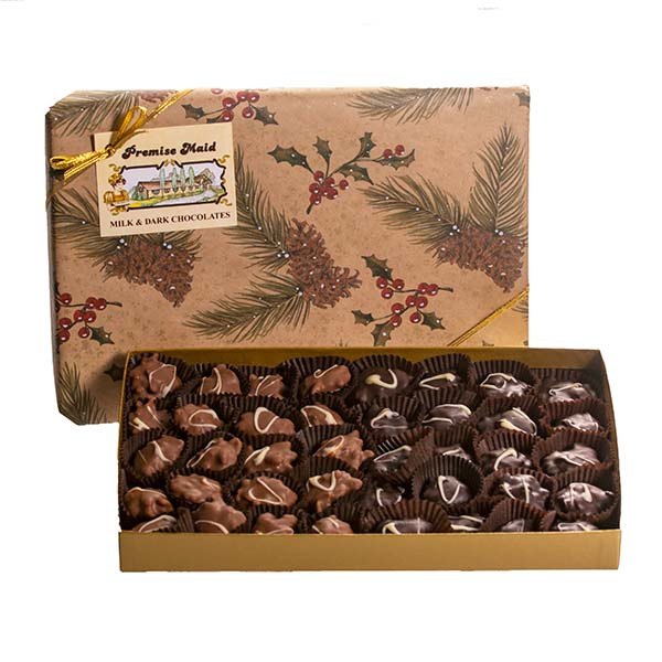 - Ingredients: Sugar, dark chocolate, corn syrup, invert sugar, butter, evaporated milk, nonfat & whole milk solids, brown sugar, cream , coconut, cocoa butter, peanut butter, peanuts, molasses, nuts, fruits, gelatin, corn starch, potato starch, coconut oil, palm oil, eggs, tapioca flour, salt, honey, lecithin invertase, glycerine, fruit pectin, dextrose, citric & organic acid, baking soda, cream of tartar, emulsifier, vanilla, vanillin,