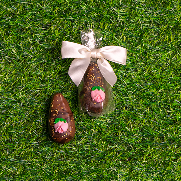 A rich chocolate fudge truffle center with chocolate shavings,drenched in Premise Maid's signature chocolate decorated with gold sugar shavings.