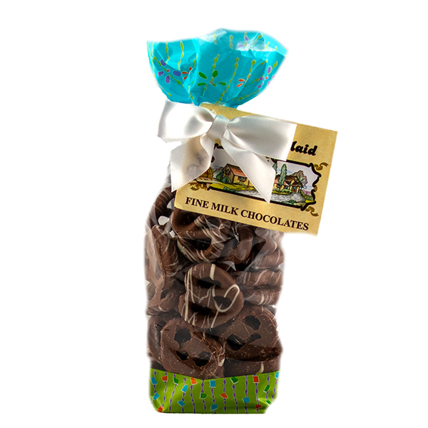 Freshly baked Pennsylvania Dutch pretzels smothered in Premise Maid's signature chocolate then drizzled in our white chocolate.