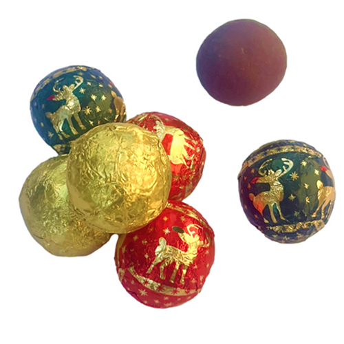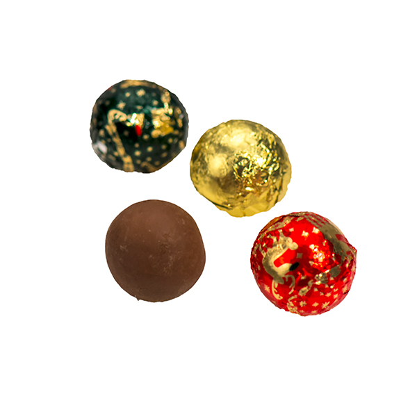 Bite sized premium milk chocolate balls, wrapped in assorted colors of checkered jewel toned Italian foils. Great for filling giftware or party favor items, candy jars, or Christmas stockings.