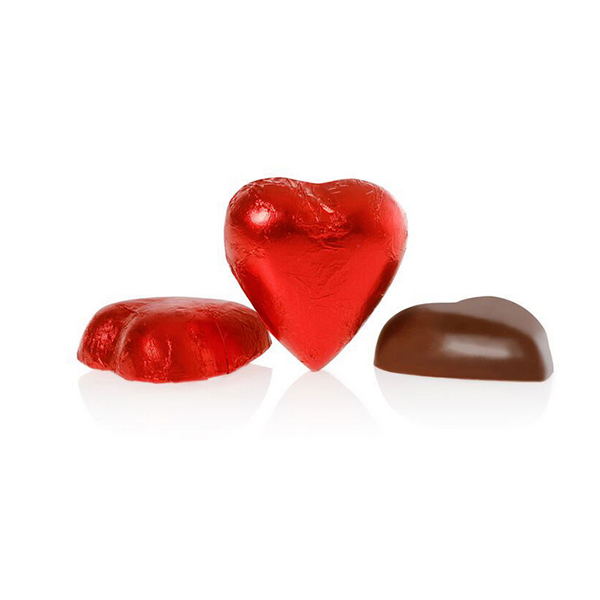 Premise Maid's creamy milk chocolate in bite size heart shapes, wrapped in elegant red foil. Nothing says “I Love You” on Valentine’s Day like a bright red chocolate heart – or on any day.