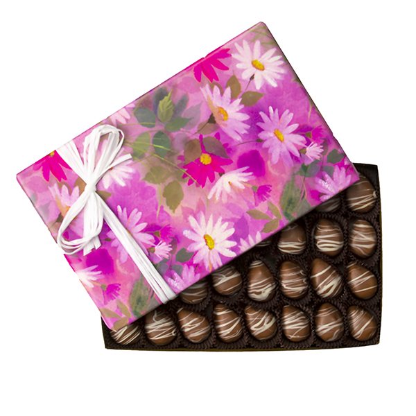 A white cream center with bits of sweet coconut drenched in Premise Maid's signature chocolate, drizzled with white chocolate.