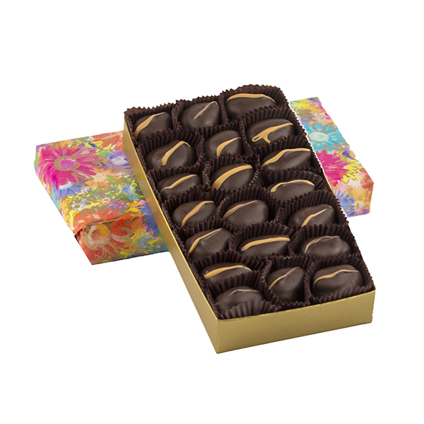 Twice as much creamy peanut butter mousse center topped with a dab of creamy peanut butter then drenched in Premise Maid's signature chocolate.