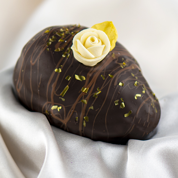A velvety center flavored with fresh dairy butter drenched in Premise Maid's signature chocolate sprinkled with edible gold sugar shavings.