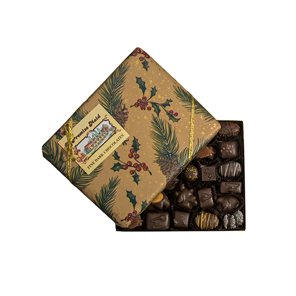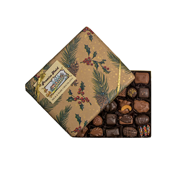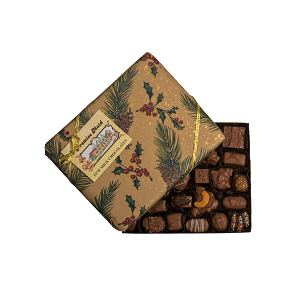 Our seasonal assortment gift box is filled with chewy golden caramels, velvety creams, rich truffles, fruit jellies, marshmallows, cashew turtles, nuts and of course our well known peanut butter creations.