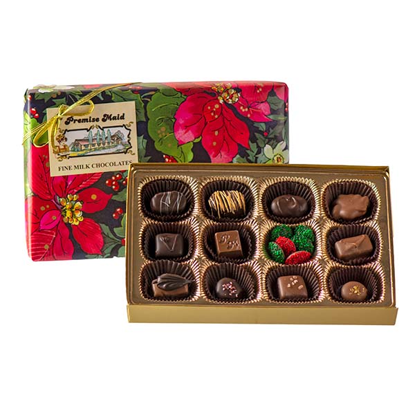 Our Holiday Gift Assortment is filled with our best sellers:chewy golden caramels, velvety creams, rich truffles, nuts, coconut and of course our well known peanut butter creations. Available in milk and dark chocolate only